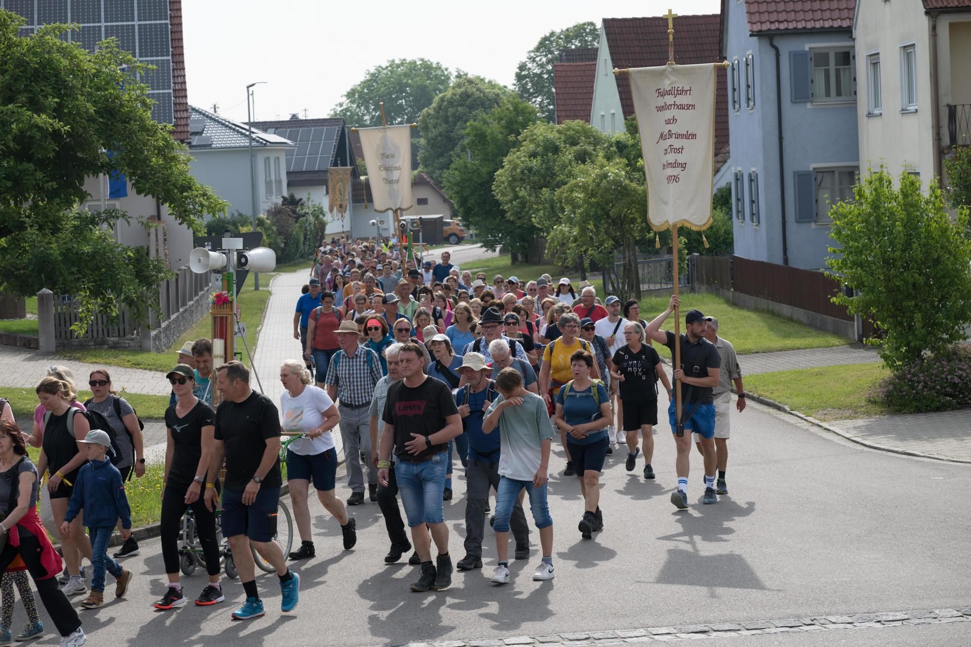 Bei perfektem Wallfahrts-Wetter starteten gut 100 Wallfahrerinnen und Wallfahrer in Bertoldsheim. Bis zum Ziel in Wemding erreichte unser Zug die Größe von 280 Personen. Wir danken allen, die sich beteiligten und wieder einmal für eine einzigartige Atmosphäre sorgten.