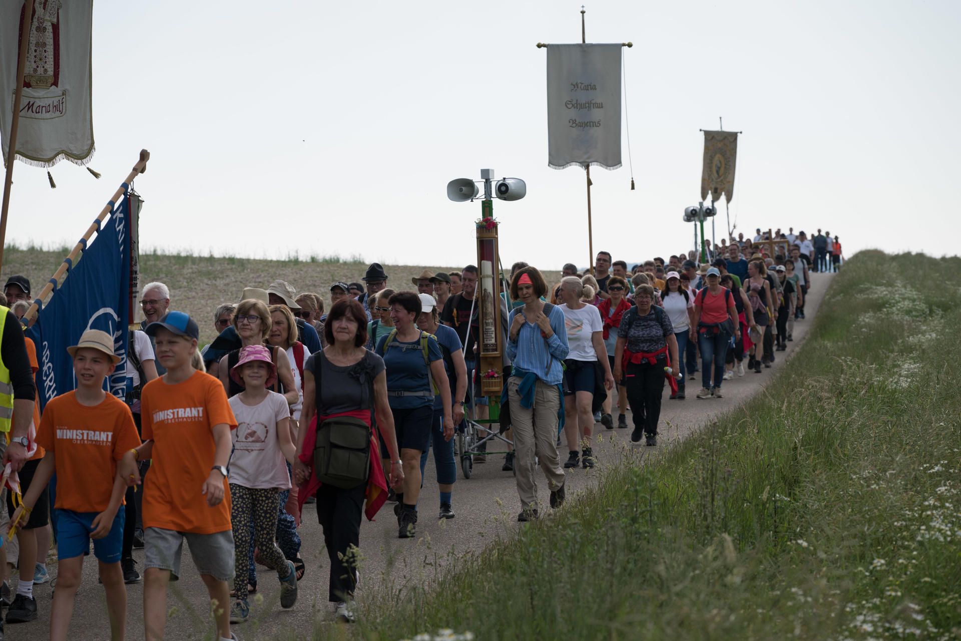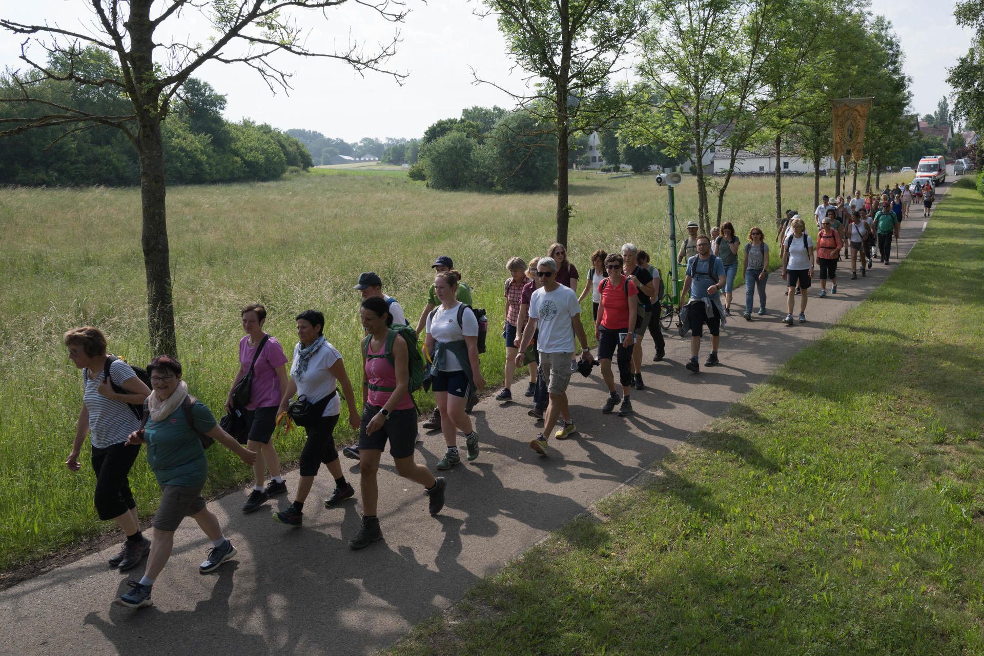 Bei perfektem Wallfahrts-Wetter starteten gut 100 Wallfahrerinnen und Wallfahrer in Bertoldsheim. Bis zum Ziel in Wemding erreichte unser Zug die Größe von 280 Personen. Wir danken allen, die sich beteiligten und wieder einmal für eine einzigartige Atmosphäre sorgten.